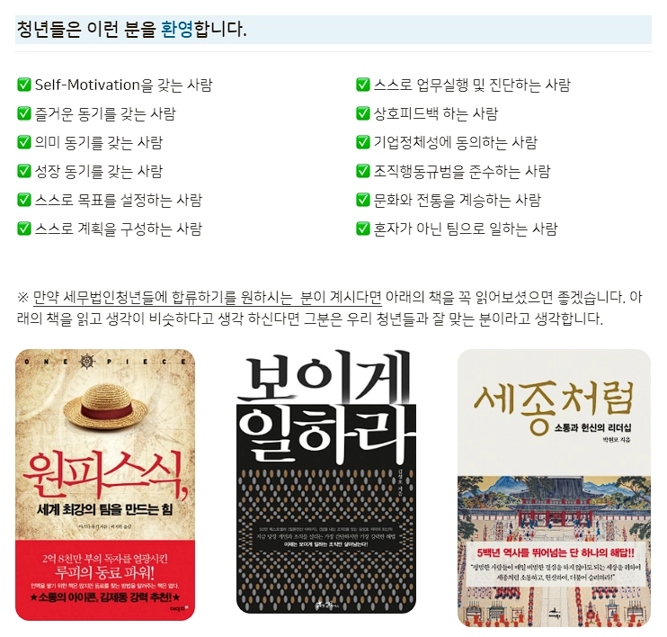 청년들의 꿈을 이룰 때 당신(직원)의 꿈이 이루어지면 됩니다.