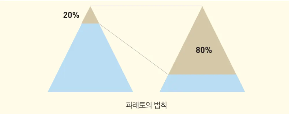 파레토법칙은 80%결과는 20%의 원인에서 발생한다는 현상을 설명한 것입니다.