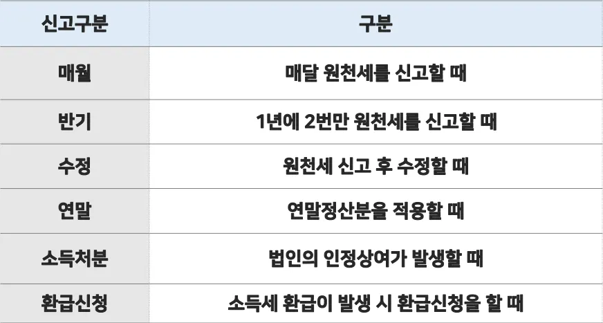 원천세 신고를 매월하는지 1년에 2번 하는지 파악 할 것(홈택스에서 조회하기), 원천징수이행상황신고 용어: