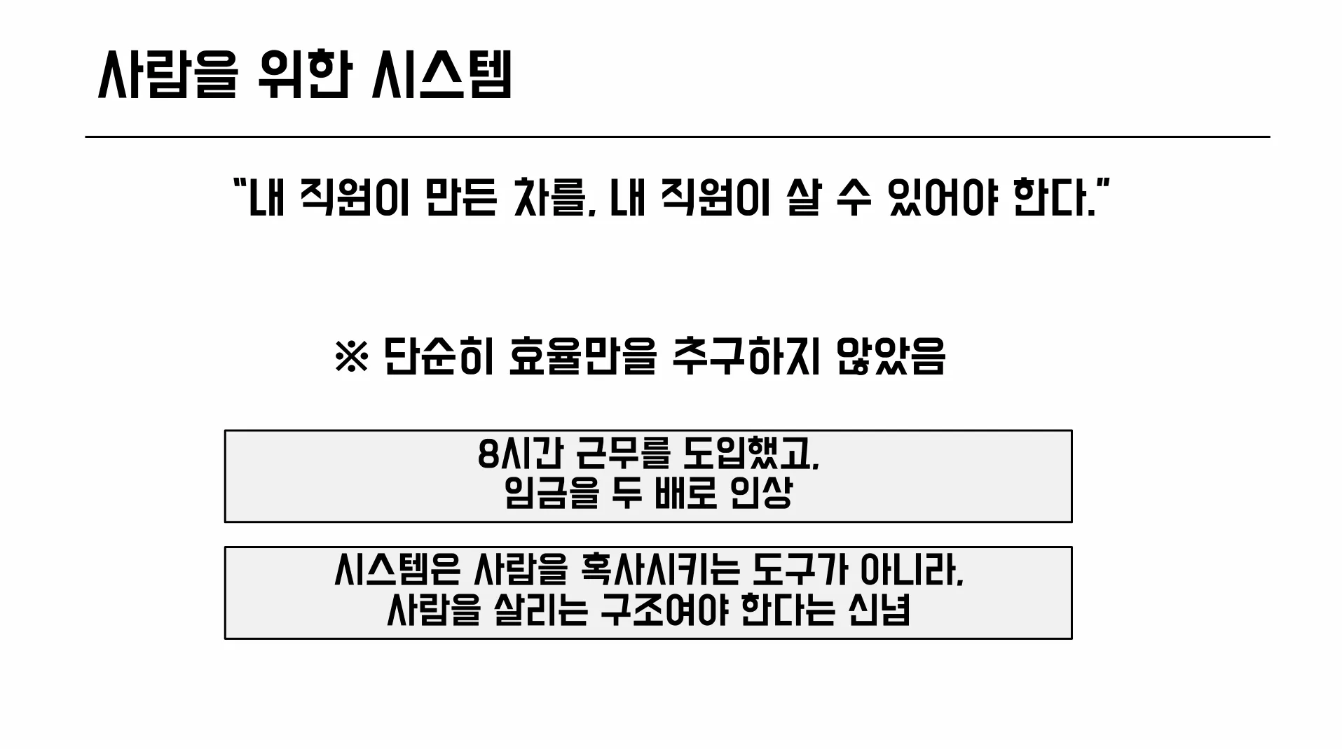 “내 직원이 만든 차를, 내 직원이 살 수 있어야 한다.”