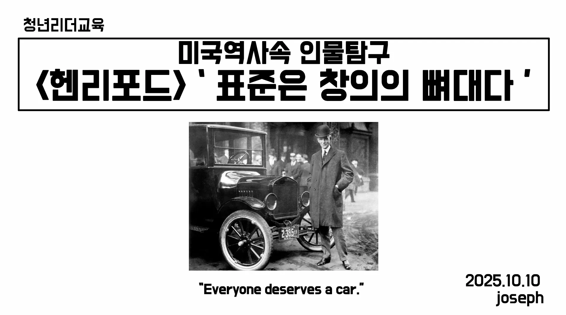 여러분, 오늘은 ‘헨리 포드’라는 한 사람을 통해