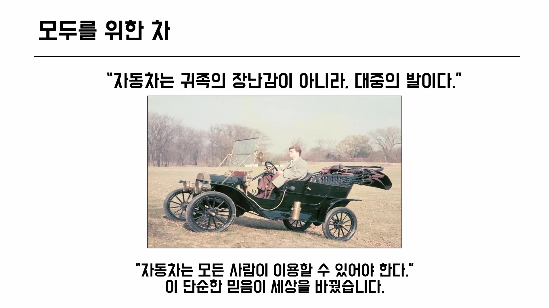 “모든 사람이 탈 수 있는 차를 만들겠다.”