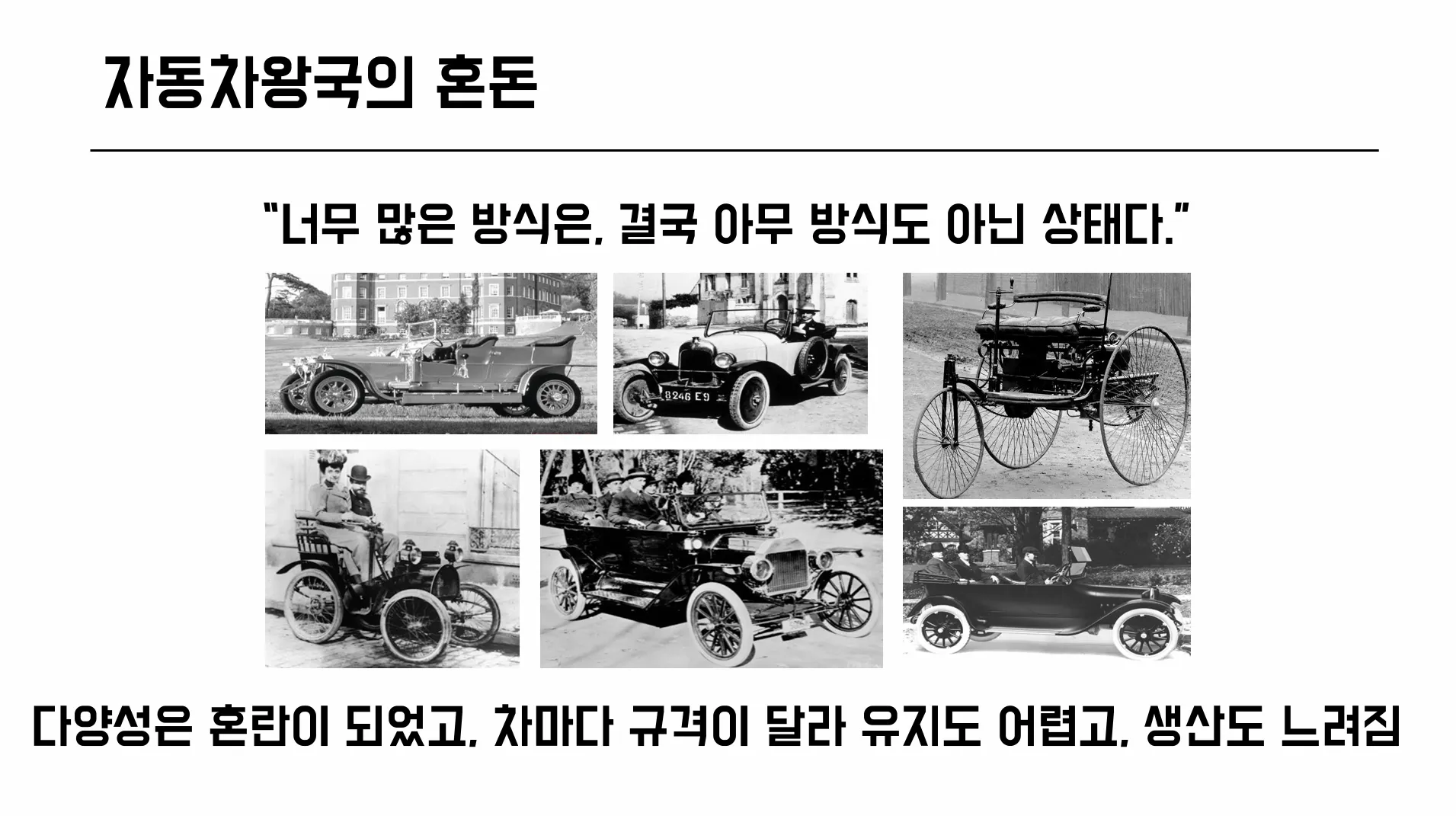 차마다 규격이 달라 유지도 어렵고, 생산도 느렸죠.
