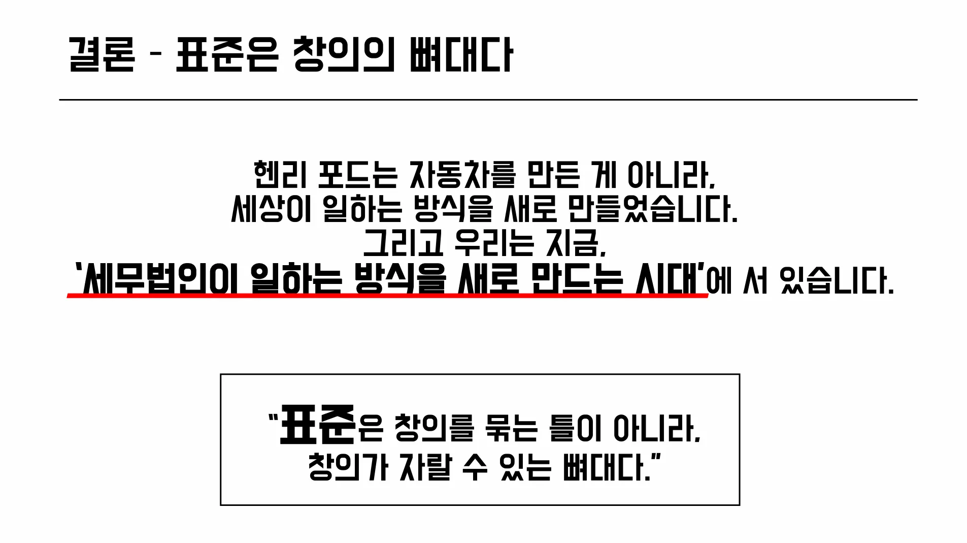 “표준은 자유를 억제하는 틀이 아니라, 창의를 돕는 구조다.”