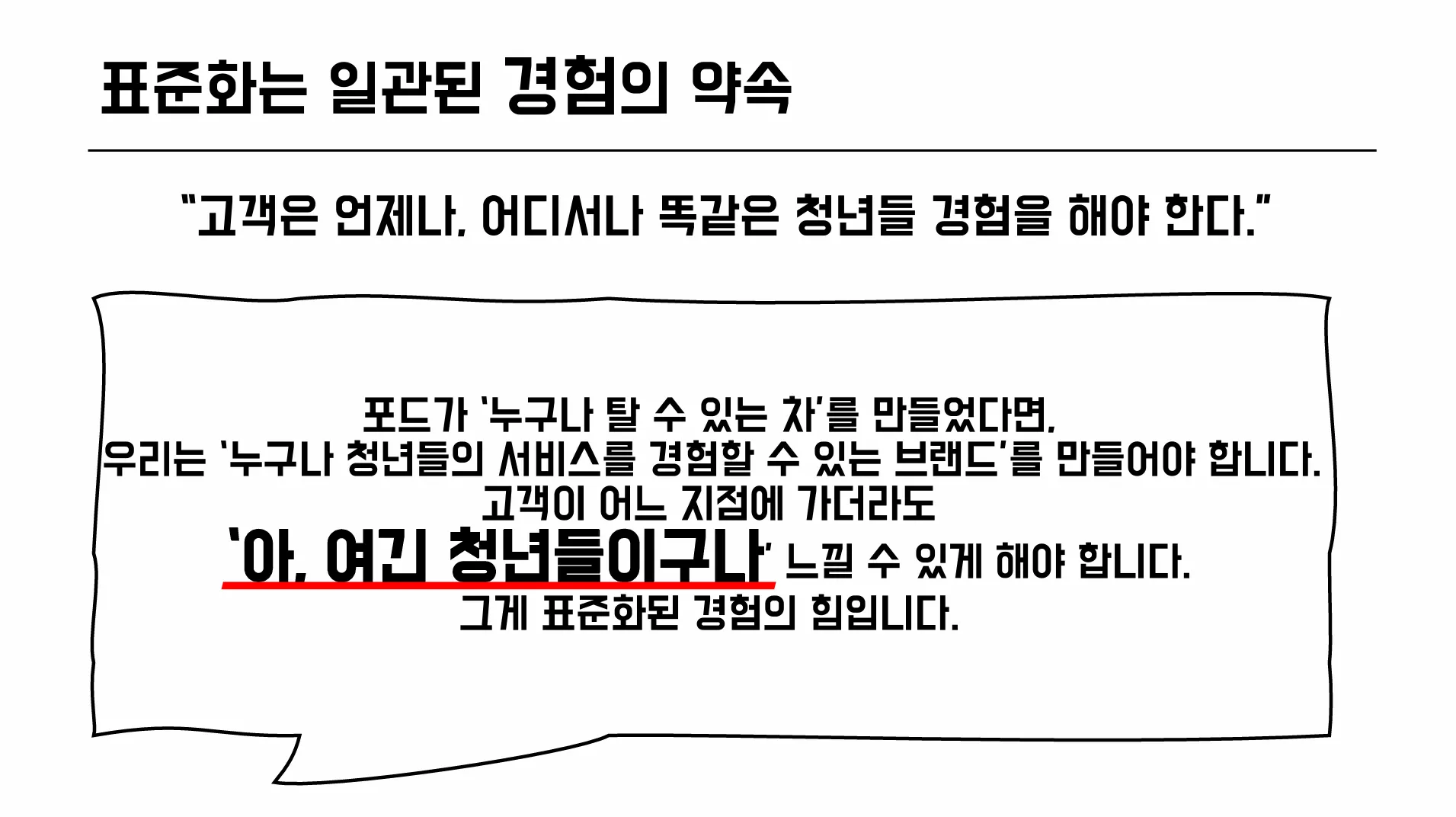 우리는 ‘누구나 청년들의 서비스를 경험할 수 있는 브랜드’를 만들어야 합니다.