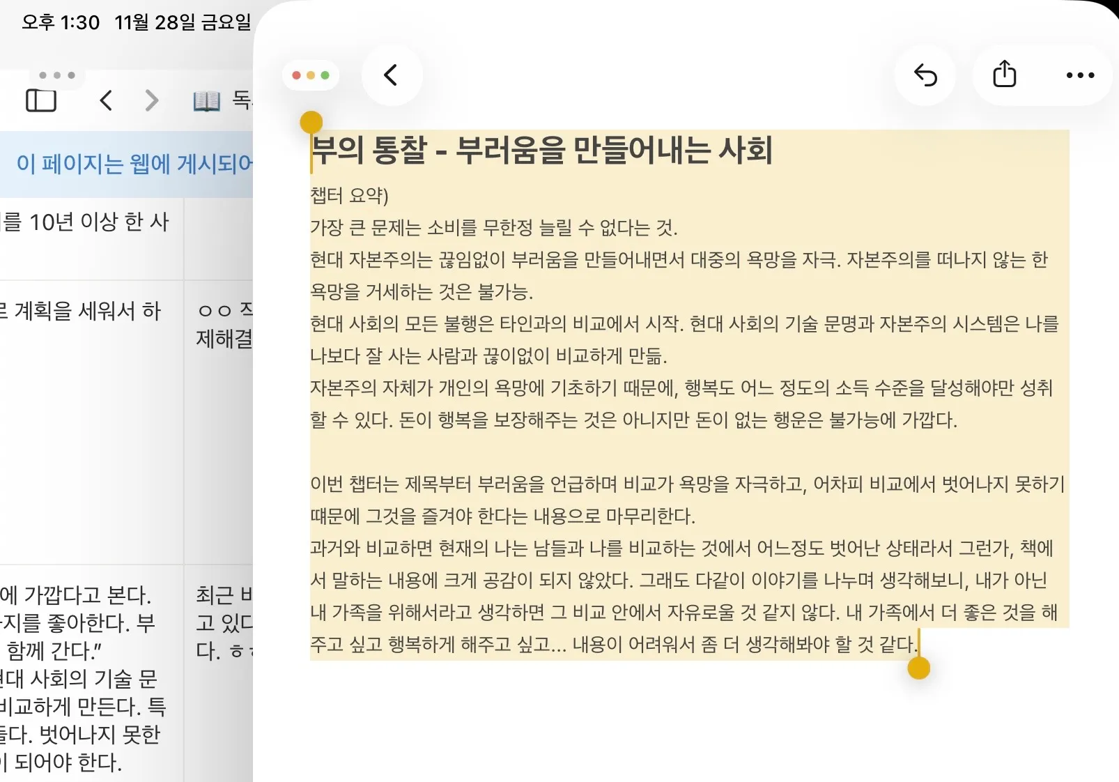 점심식사 이후: 독서나눔/희노애락