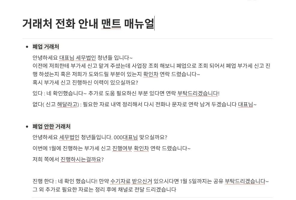 전화 메뉴얼을 수정하면서 임하니 점점 나아지는거 같아 오늘도 발전하는 하루가 된 것 같습니다.