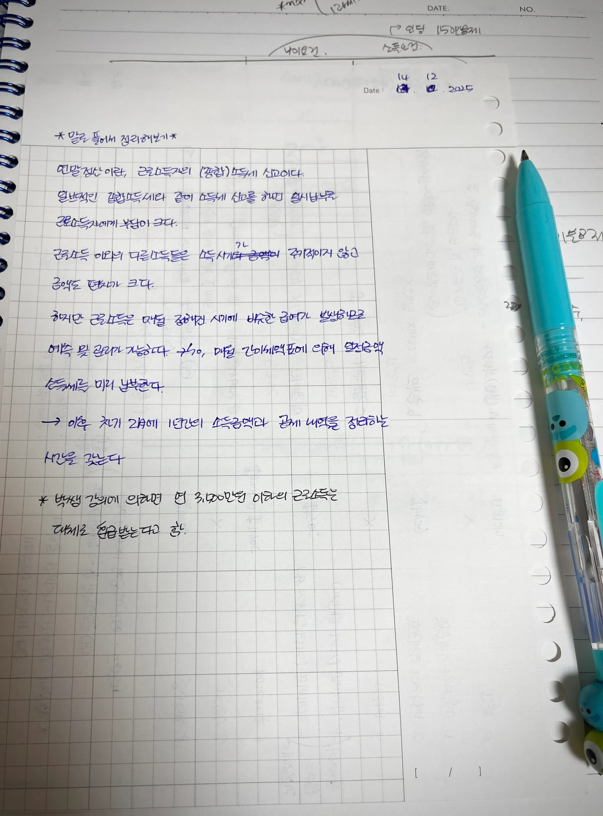 다음 주부터 퇴근 후 1시간씩 연말정산 교육이 예정되어 있어서 사전 예습