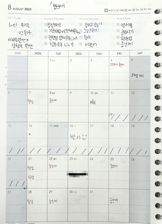 7월 부가세가 끝나고 드디어 하반기 계획을 세웠습니당!