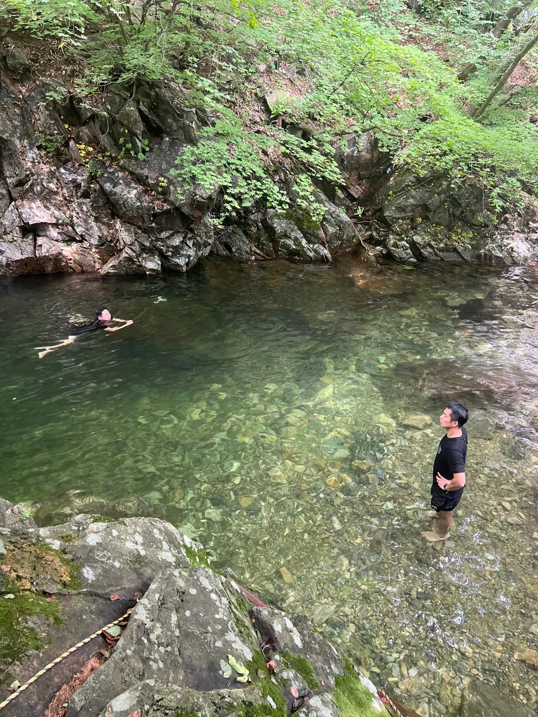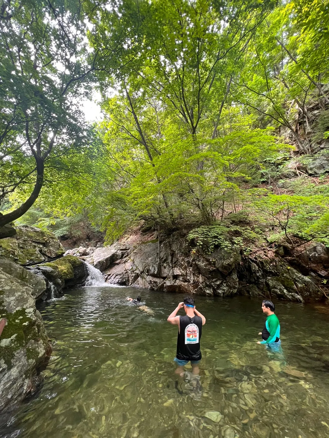 계곡 중간은 수심이 3M이상 하기 때문에 좀 무섭다. 구명조끼 필수. 수영좀 잘하는 분은 괜찮다.