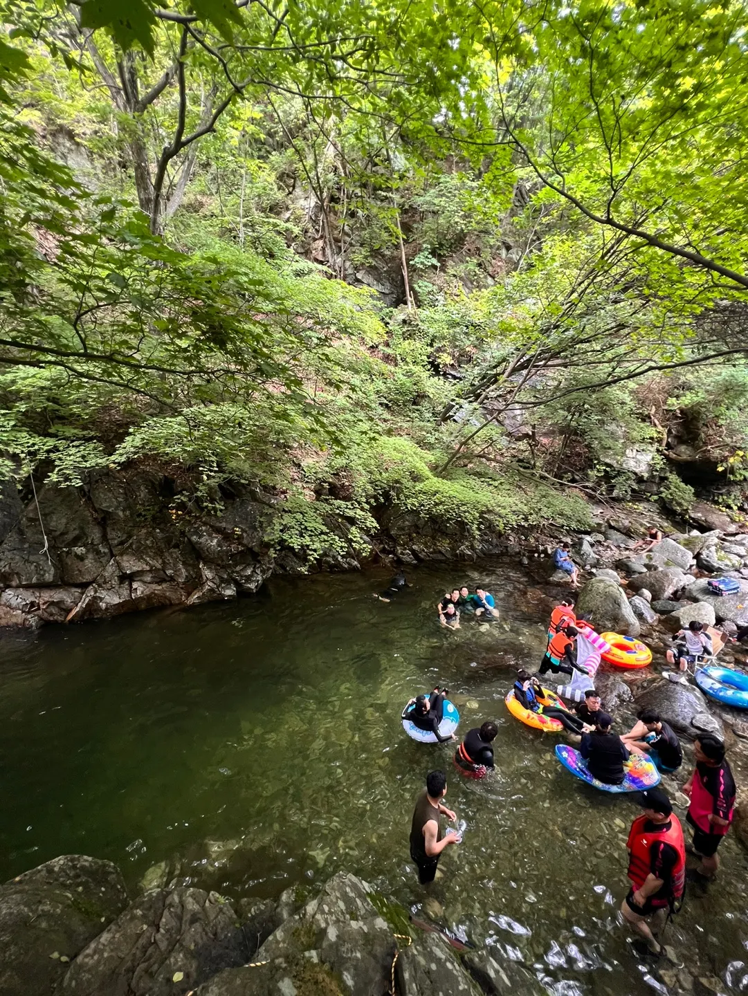 아래쪽은 물이 얕아 아이들이 놀기 좋고 위쪽으로 올라가면 수심이 좀 깊은 계곡물이 있는데 우린 여기에서 놀기로 했다. 튜브나 구명조끼도 돈 주고 대여할 수 있다.