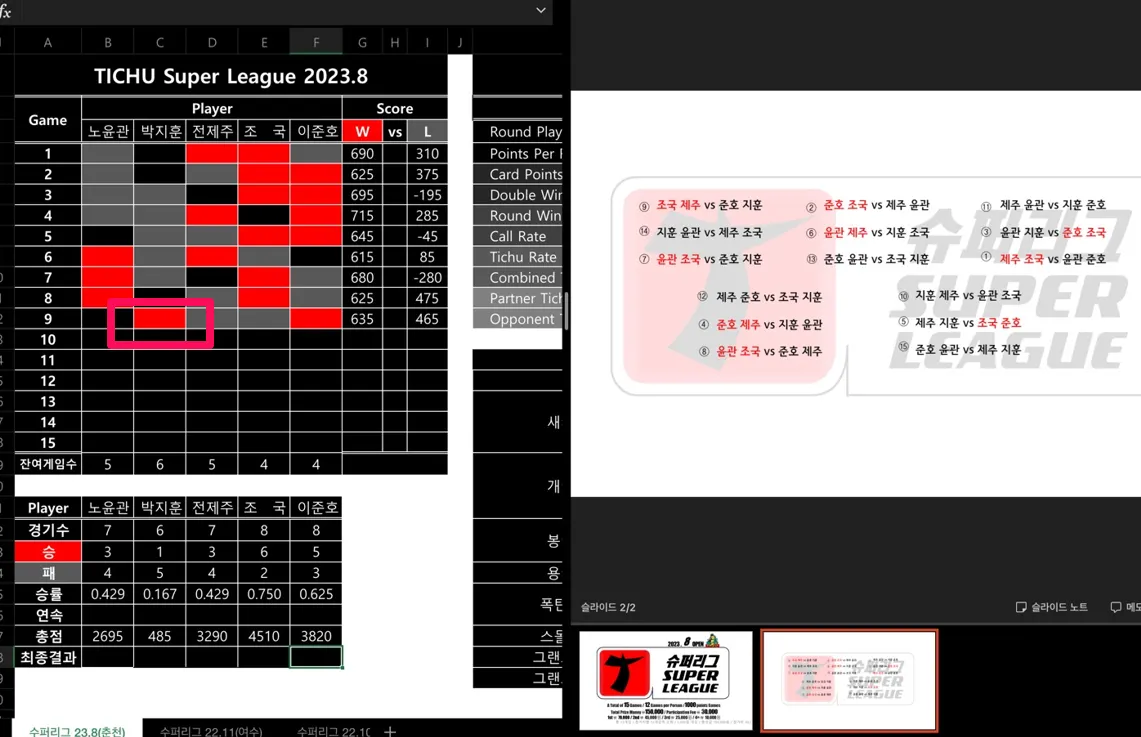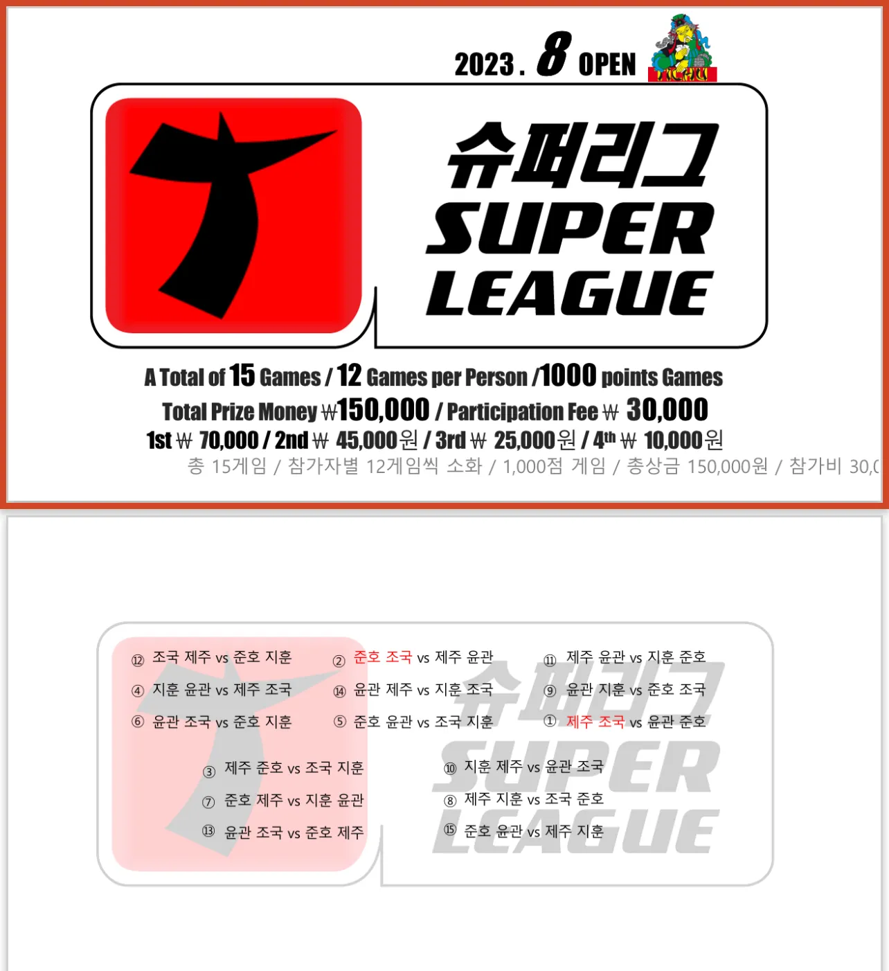 - 참고로 우리는 게임도 그냥 하진 않는다. 제대로 된 체계를 잡고 상금도 걸어서 재미를 더욱 높였다. 아래는 대진표이다.