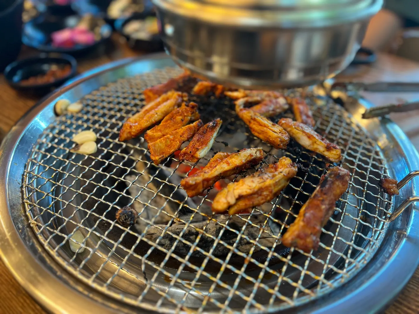 철판과 숯불 두군데로 나뉘어져있고 둘다 같은 집이다.