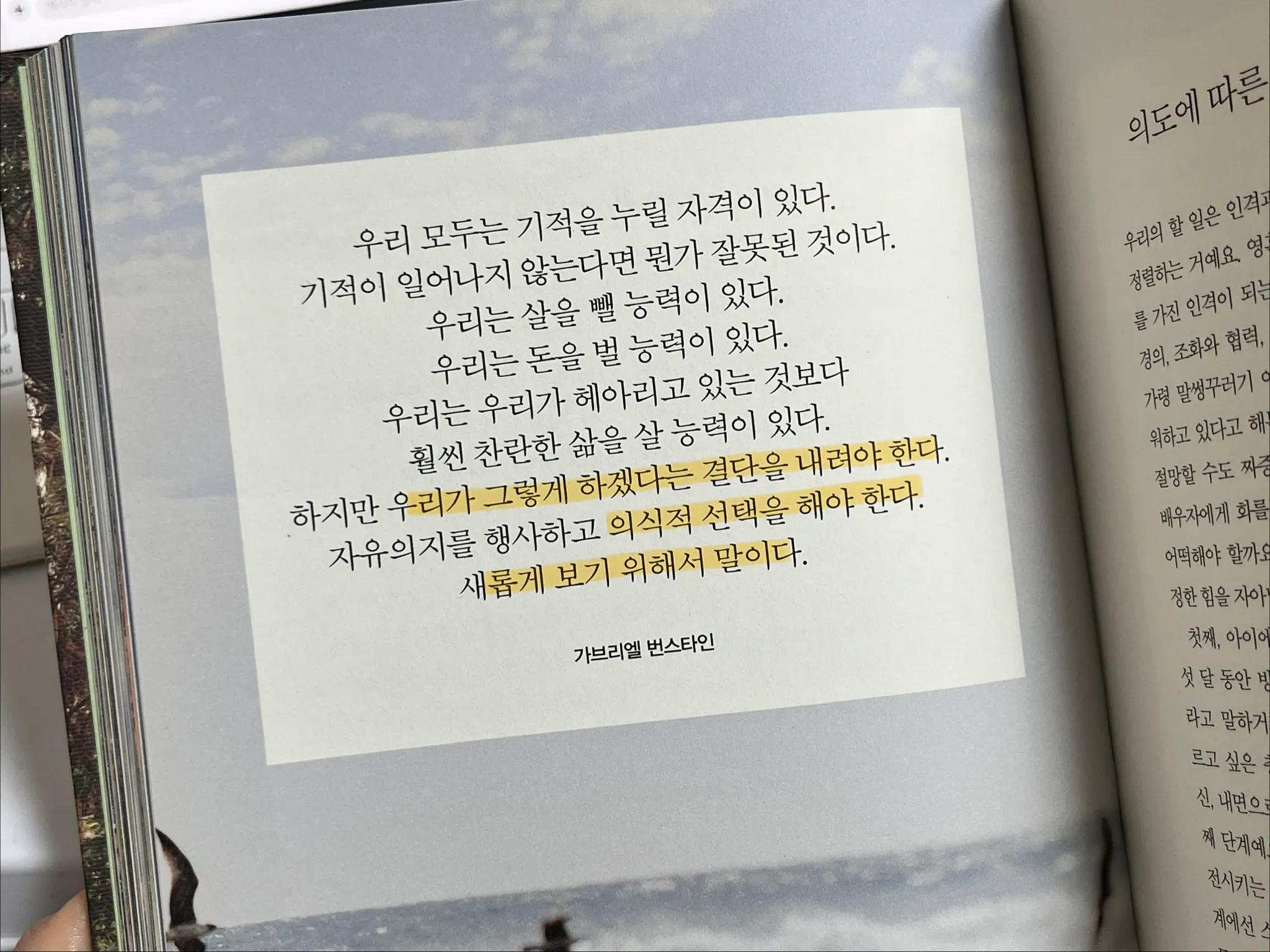 책의 문구를 읽으며, ”무언가를 이루기를 바란다면, 이미 내가 그런 사람이라고 정체성을 확립해야 한다.“는 생각이 들었다. 확언과도 같다. 이루고자 하는 것에 대해 갈팡질팡 고민하는 것은 시간을 지연시키는 것이 아니라 그냥 하지 않는 것이다. ’의식적 선택‘은 방향을 확고하게 하는 버튼이자 엑셀이다. 26년 내가 정한 방향에 대해 의식적으로 선택을 했다. n년 뒤 내가 정한 미래에 나는 그 모습을 있을 것이다.