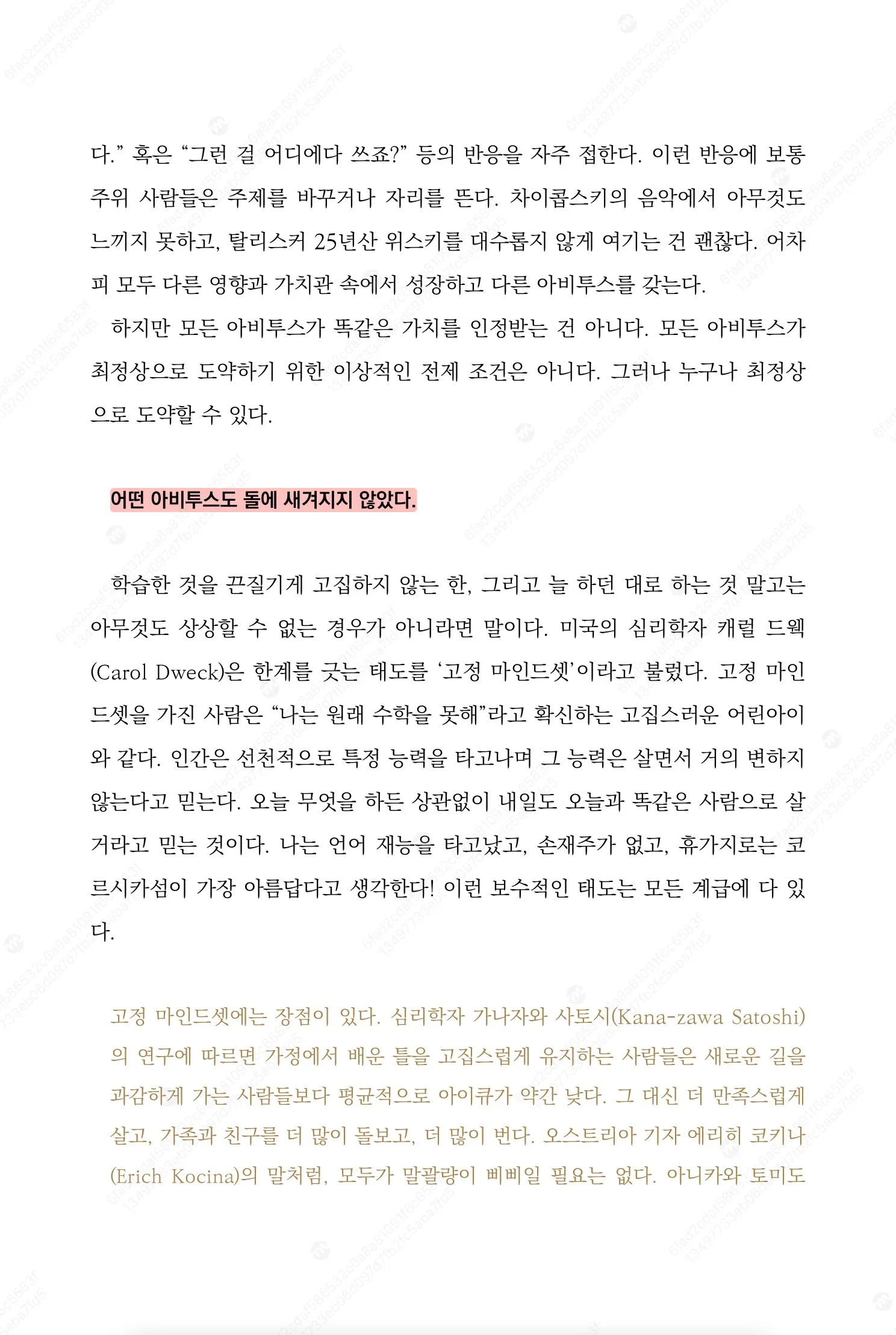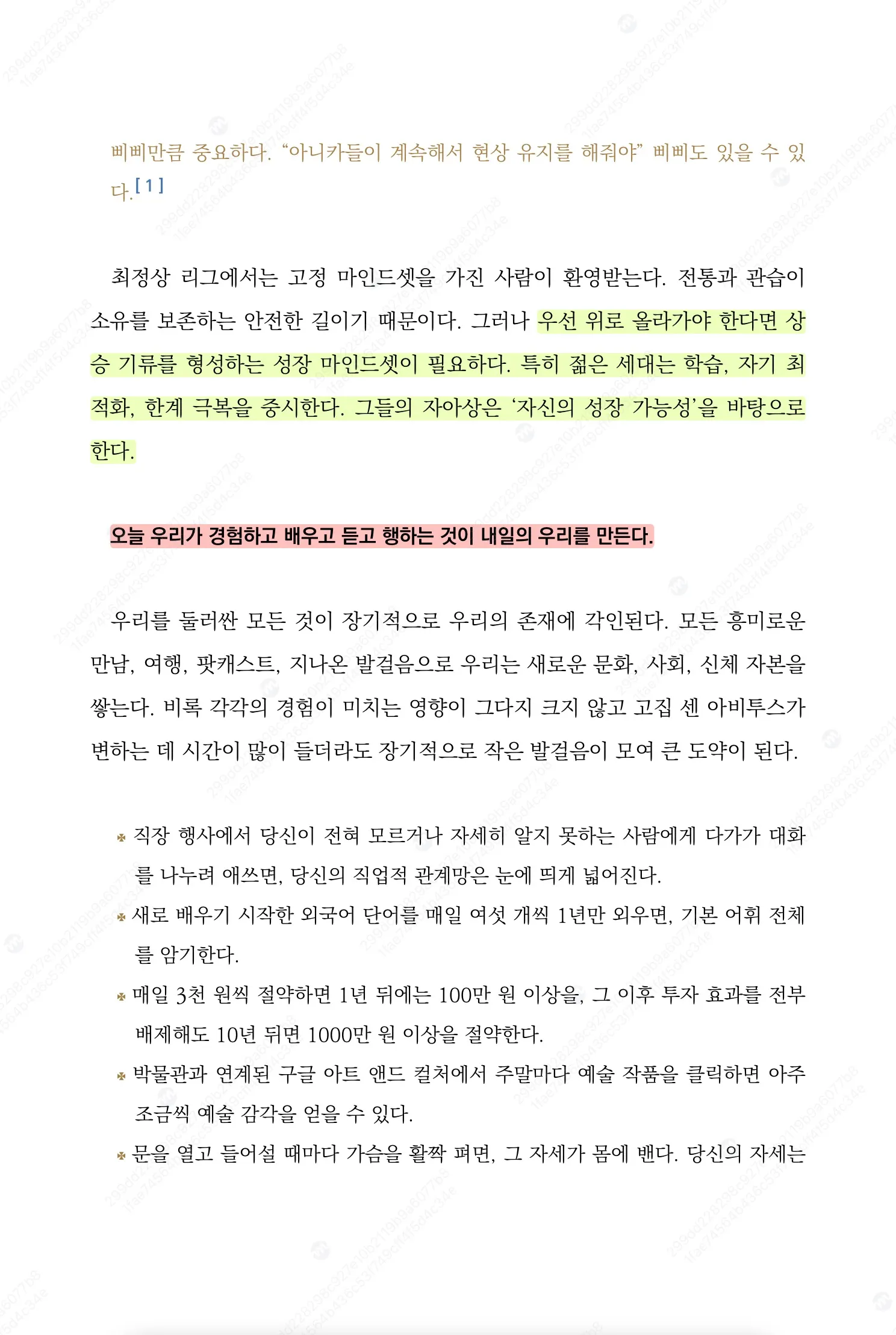 그리고 아비투스를 바꿀 수 있고, 바꾸기 위해서는 성장 마인드셋이 필요하다는 내용을 읽고, 항상 배우려는 자세를 잊지 말아야겠다고 생각했다.