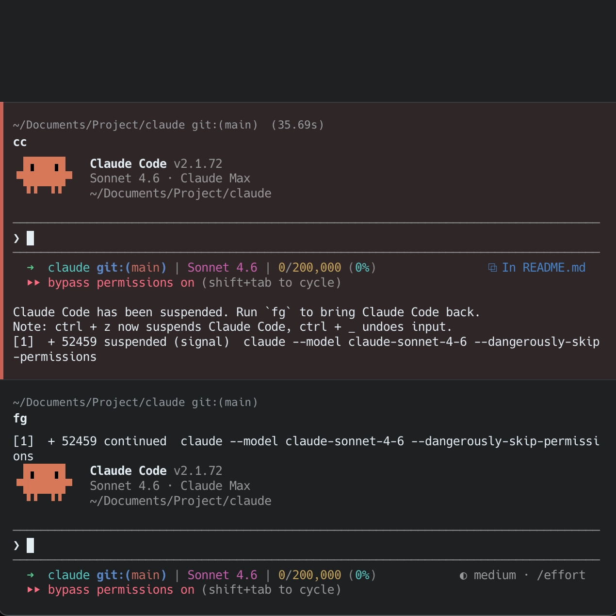 클로드에게 명령 이후 새로운 탭을 키지않고 터미널에서 작업 수행후 다시 돌아오는 용도입니다.