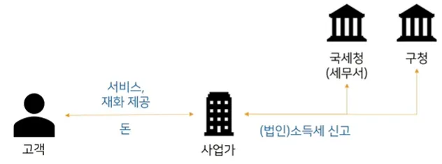 국세 → 소득세법(개인, 열거주의)/법인세법(법인, 포괄주의)에 따라 계산