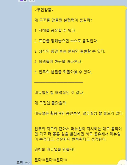 매일 아침 일어나 제일 먼저 하는 일은 책을 읽는 것이고 읽은 내용과 내 생각을 팀원들에게 공유하는 일을 2년 간 멈추지 않고 매일 하고 있다.