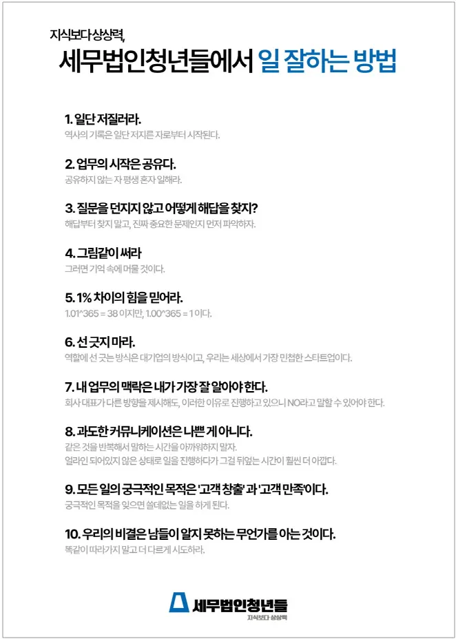 청년들은 아래의 10가지 방식을 가지고 일합니다.