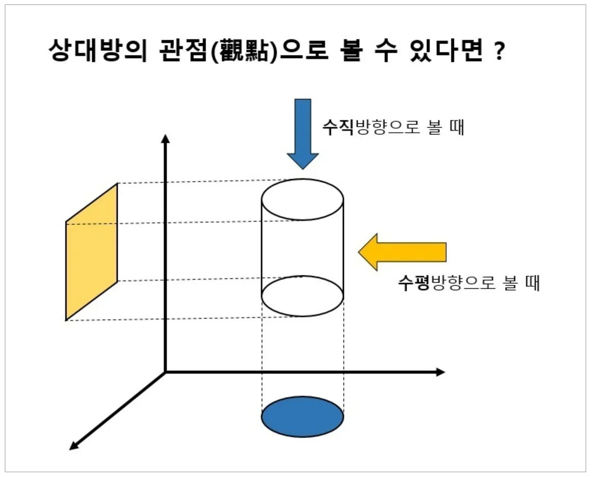 상대방의 관점에서 볼 수 있는 열린 마음으로 각자가 가지고 있는 관점을 얘기 한다면