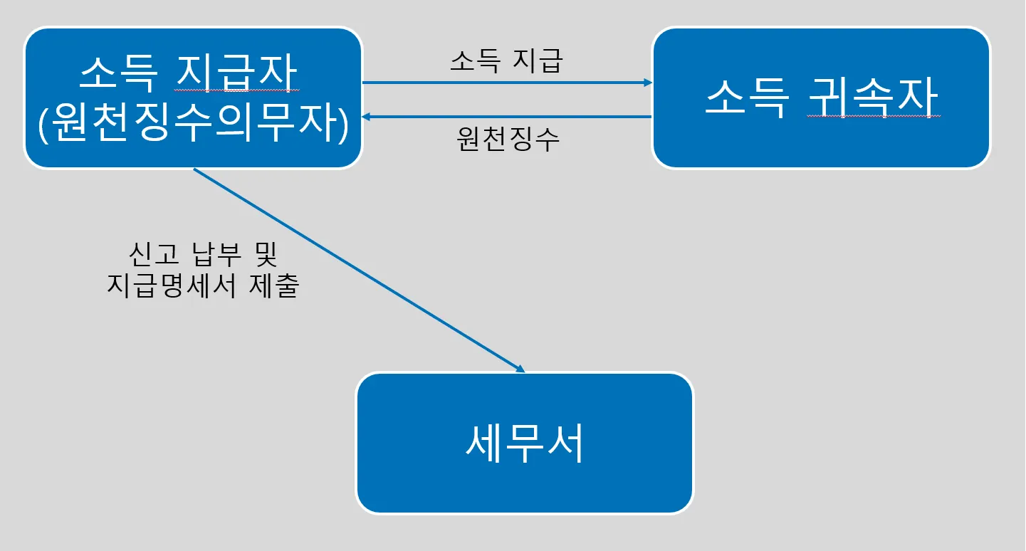 (ex. 근로자 개인에게 근로소득을 지급하는 자는 근로소득세를 원천징수해야 합니다.)
