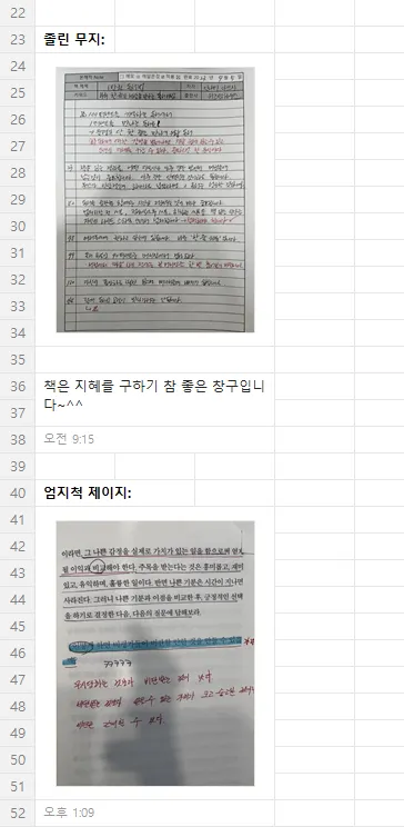 같은 주제로 생각을 공유하는 시간을 즐기길 바랍니다!