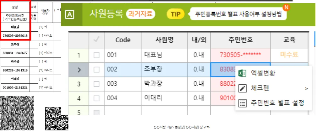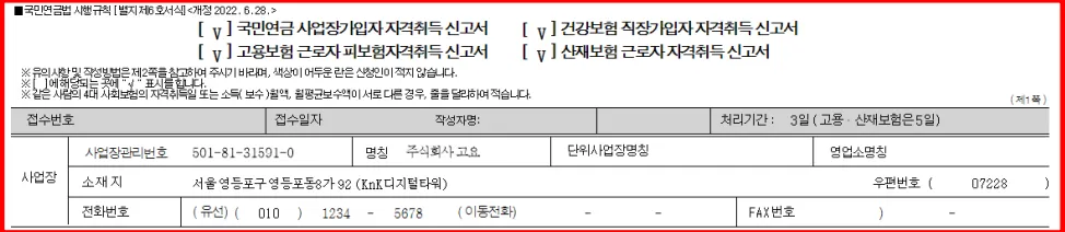 4대보험 직원 1명 등록 (취득신고서, 성립신고서)