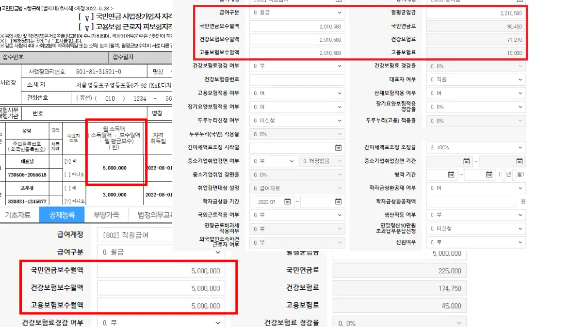 4대보험 직원 1명+대표님 급여 (취득신고서, 성립신고서)