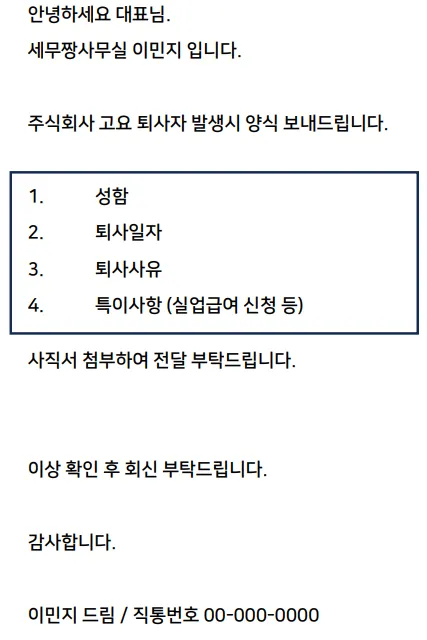 퇴사자 양식[이메일]