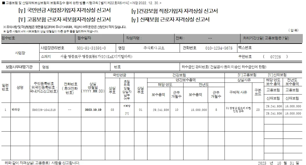 사회보험 가입자가 모두 퇴사 할 때