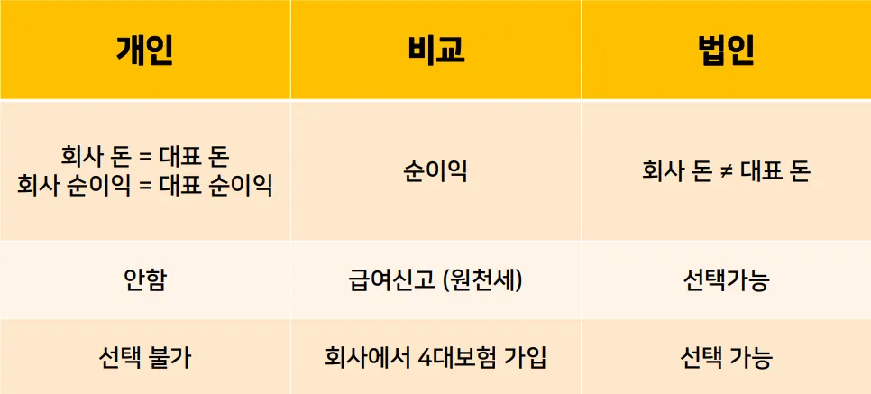 개인사업장과 법인사업장의 차이점