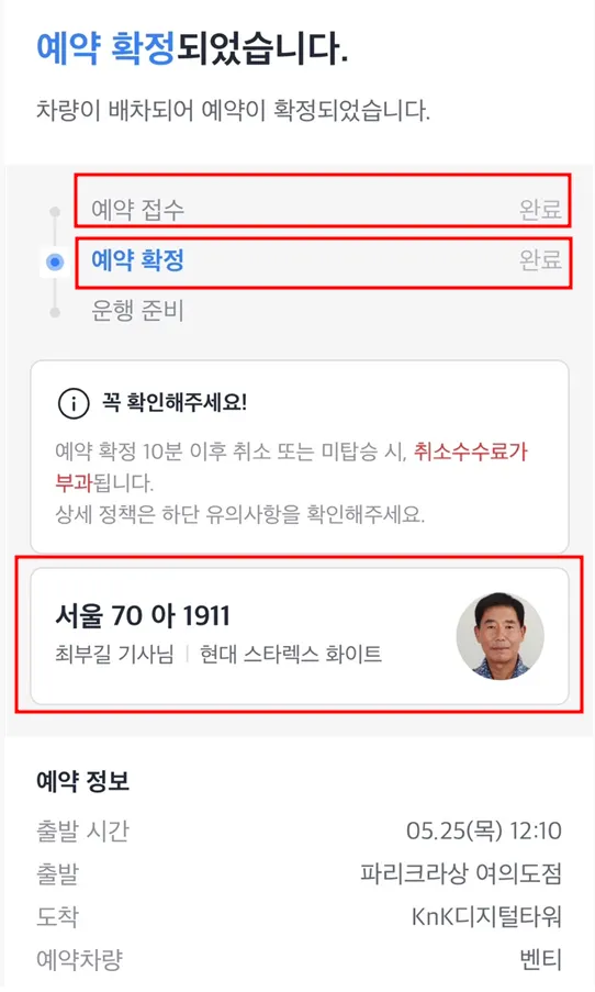 어떤 택시기사님이 언제쯤 도착하게 되는지