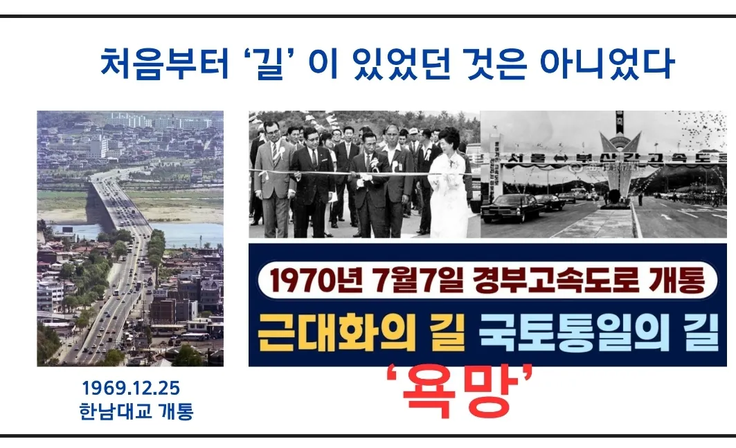 1969.12.25 한남대교가 준공되고, 1970.07.07 서울-부산 경부고속도로가 개통된후 많은 사람들이 지나다니게 되었고 국가는 비약적인 발전을 이룰 수 있었다.