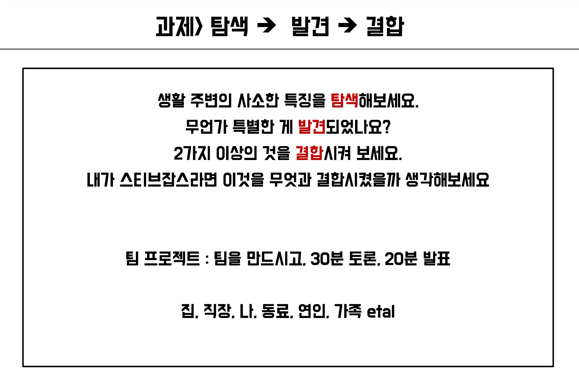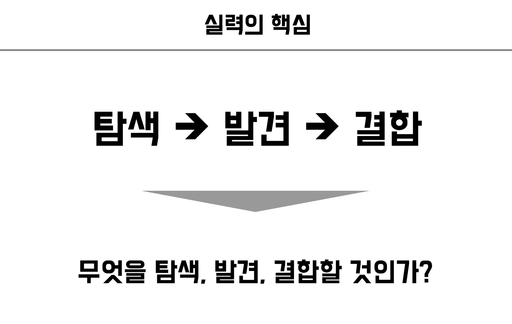 Q1. 강의에서 [탐색 - 발견 - 결합]의 과정을 강조하고 동시에 ‘핵심역량’을 결합하는 게 아주 중요하다고 말합니다. 여러분은 ‘탐색’을 잘 하는 편인가요? 또 나만의 핵심역량이 있나요?