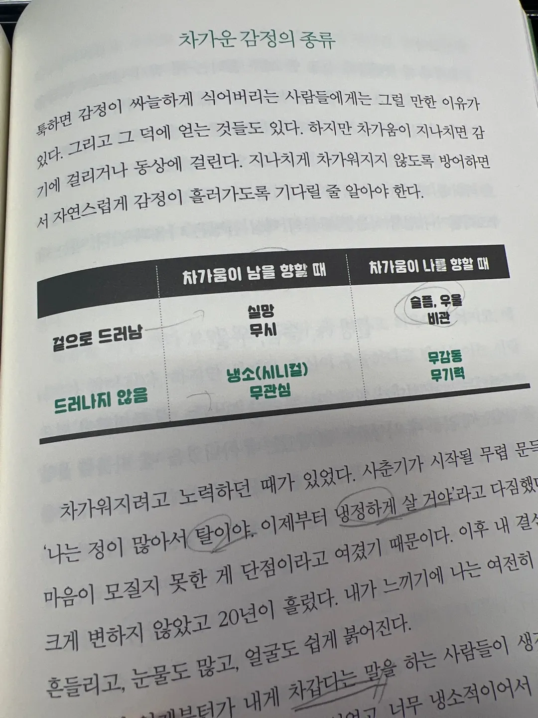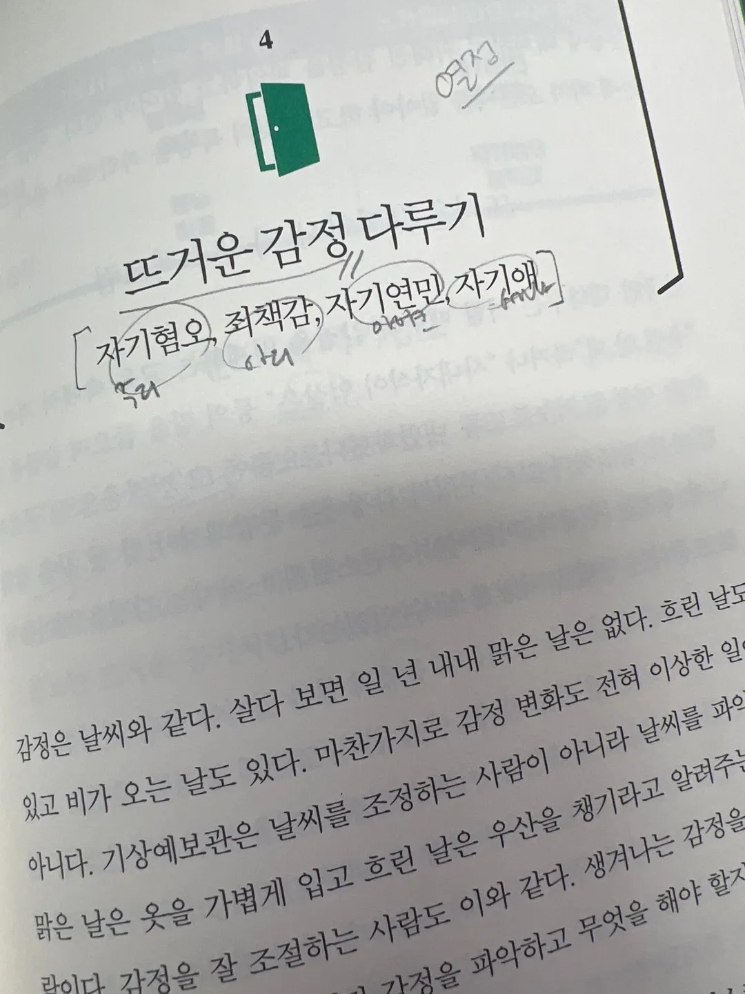 이 책이 자존감 수업임에도 감정에 대해서 계속해서 얘기하는 이유-이런 감정을 대처하기 위해선 감정을 파악하고 있어야 한다- 가 이 챕터에 있었다.