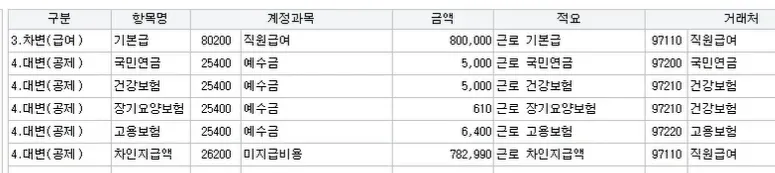 거래처에 직원급여, 각 보험을 따로 만들어 놓을 것