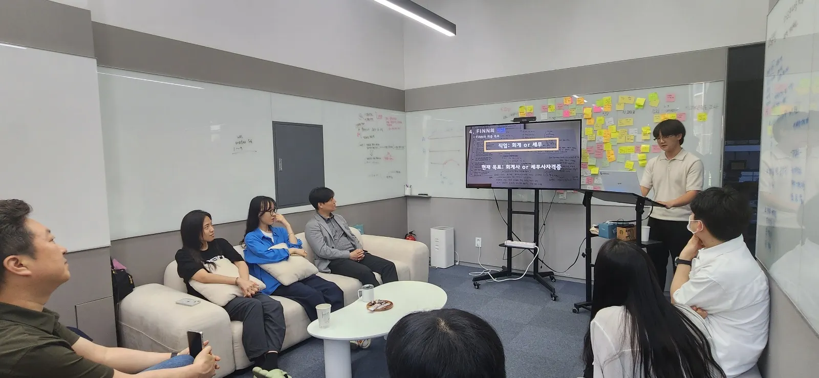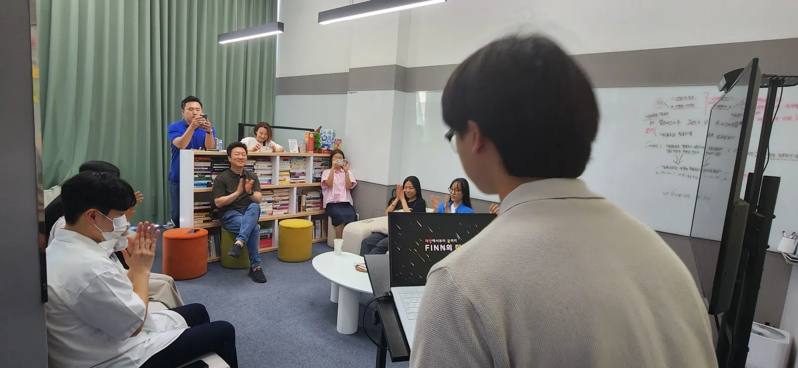 오전에는 이렇게 해리와 작은 회의실에서 발표 연습을 하고 있었는데 학교 선생님들(도제 부장님, 담임 선생님)이 찾아오셨다.
