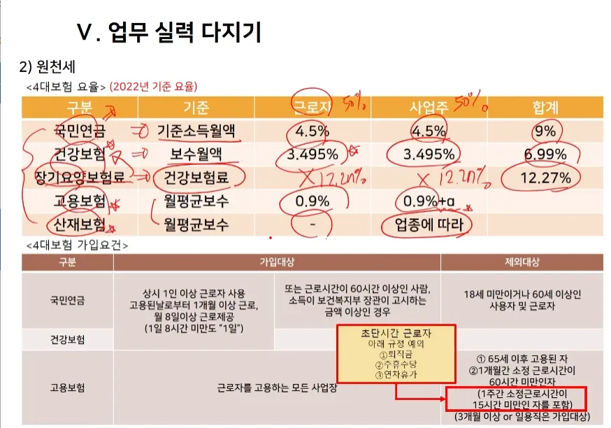 실무상 국민연금, 건강보험 가입대상이 아닌 경우