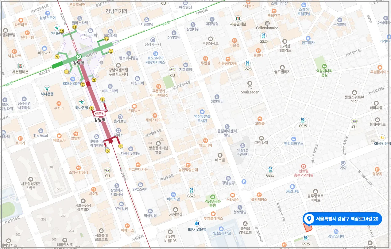 (서울특별시 역삼로 14길 20 4층 2호선, 신분당선 강남역 4번 출구 도보 5분)