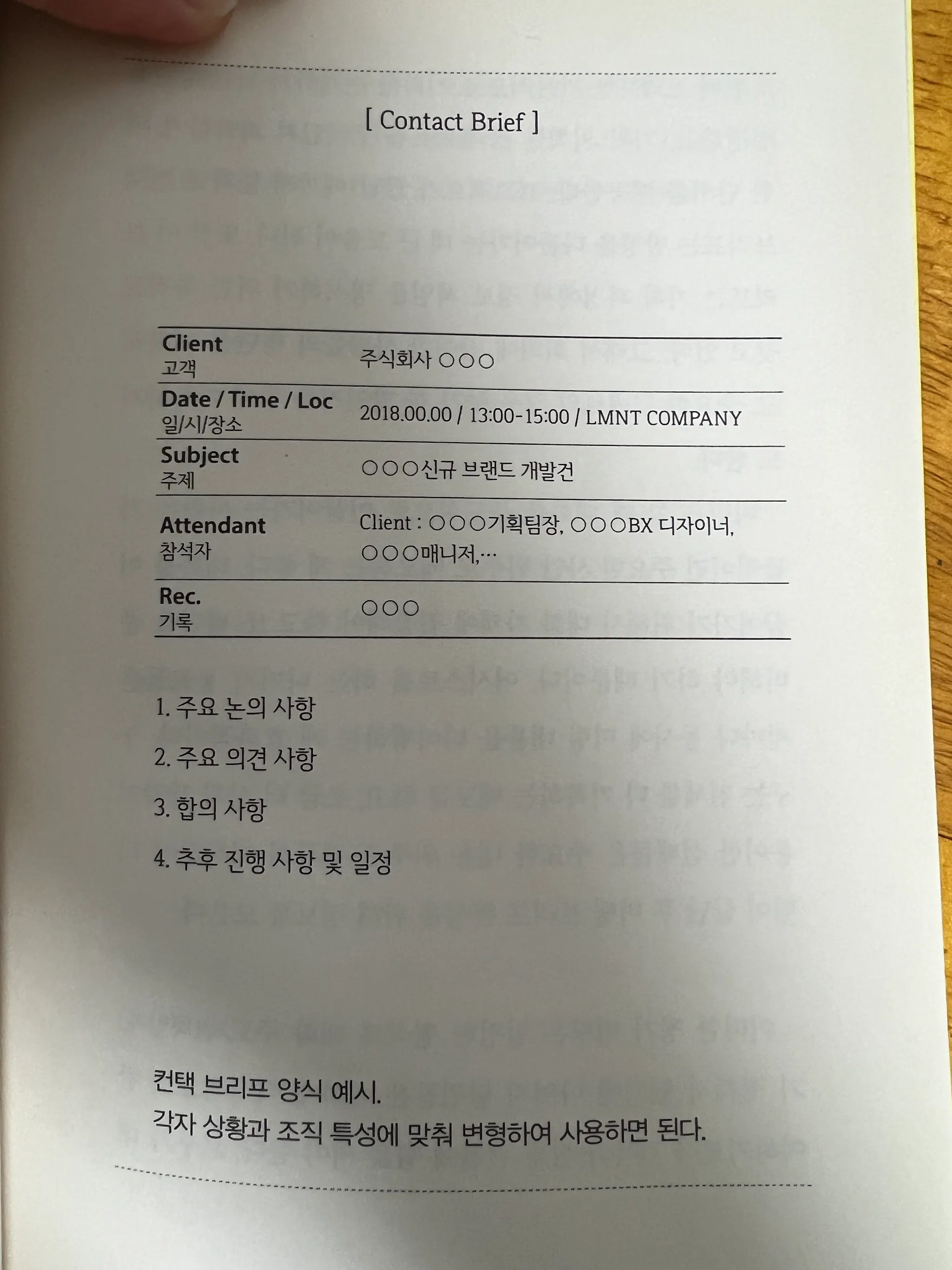 누구는 전체를 다 기록하는 메모를 하고, 조금 더 상황 파악이 용이한 선배들은 주요한 내용 위주로 정확히 기록하여 미팅이 끝난 후 미팅 브리프 완성을 위해 정보를 모은다.