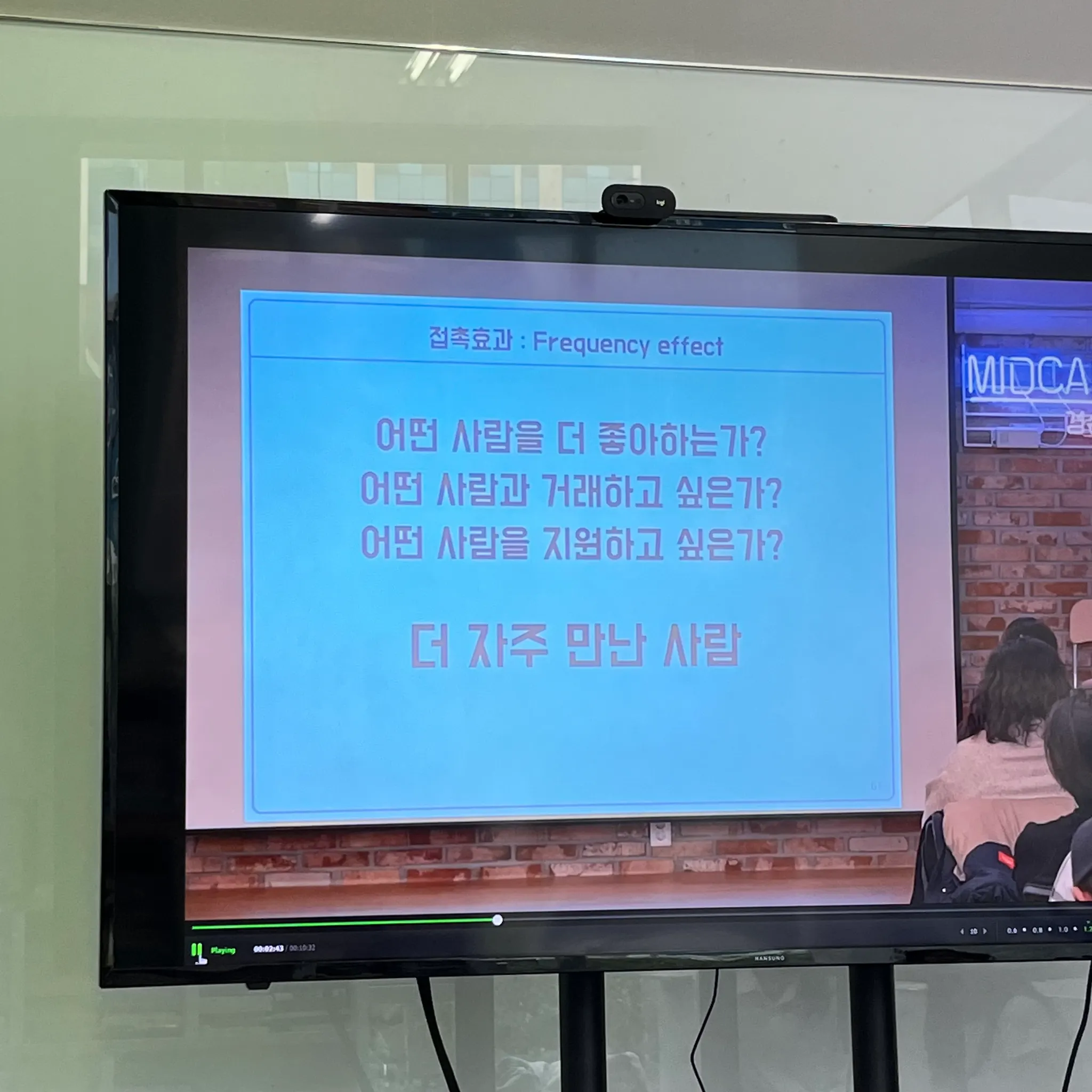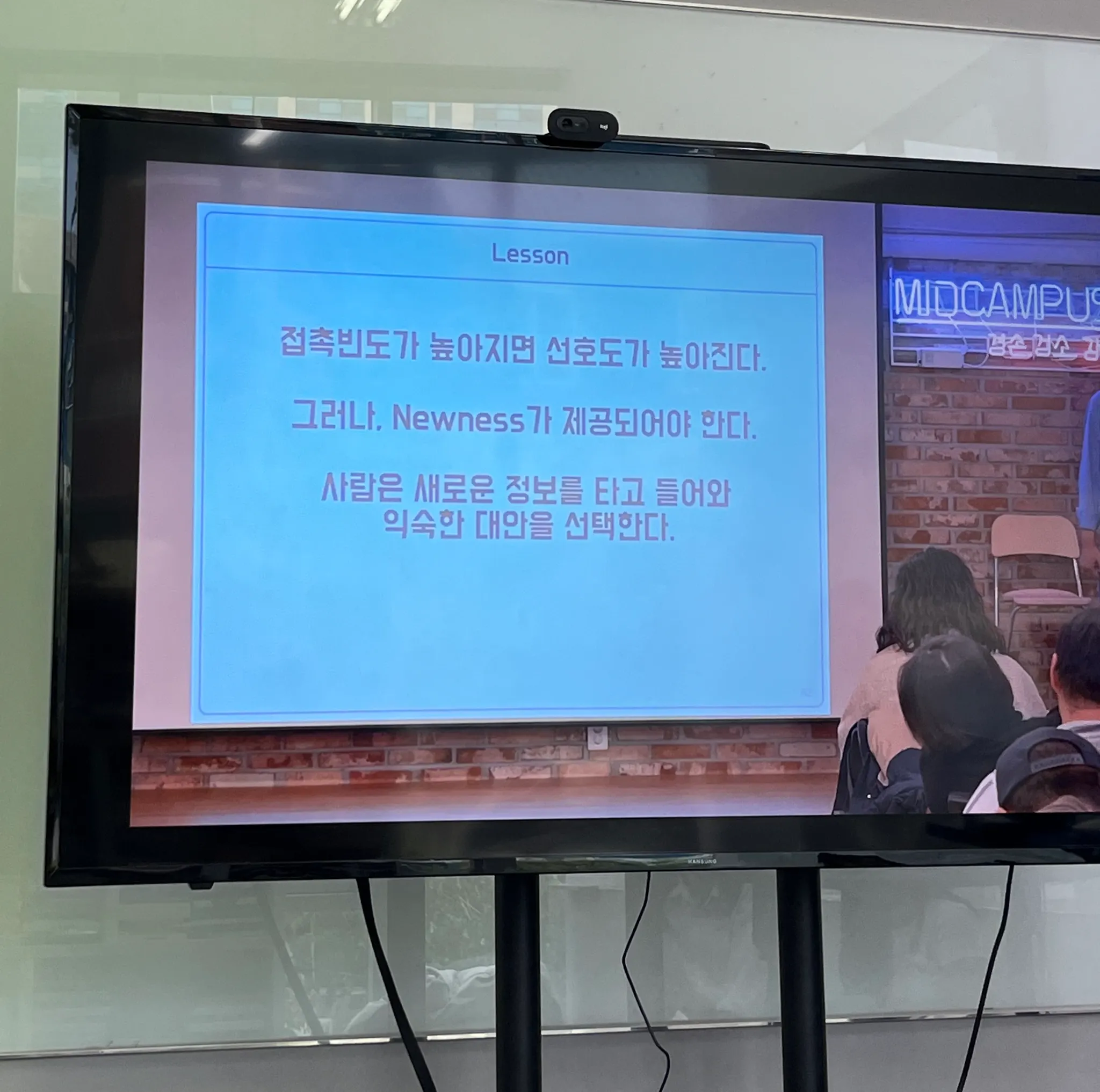 단순 노출 효과 : 한번 노출보다 반복 노출이 모든 경우에 더 많은 선호도(자신도 모르게 좋아하게 됨)