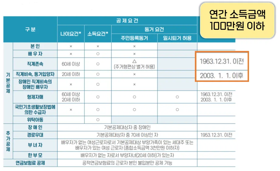 인적공제 대상자 요건: 귀속