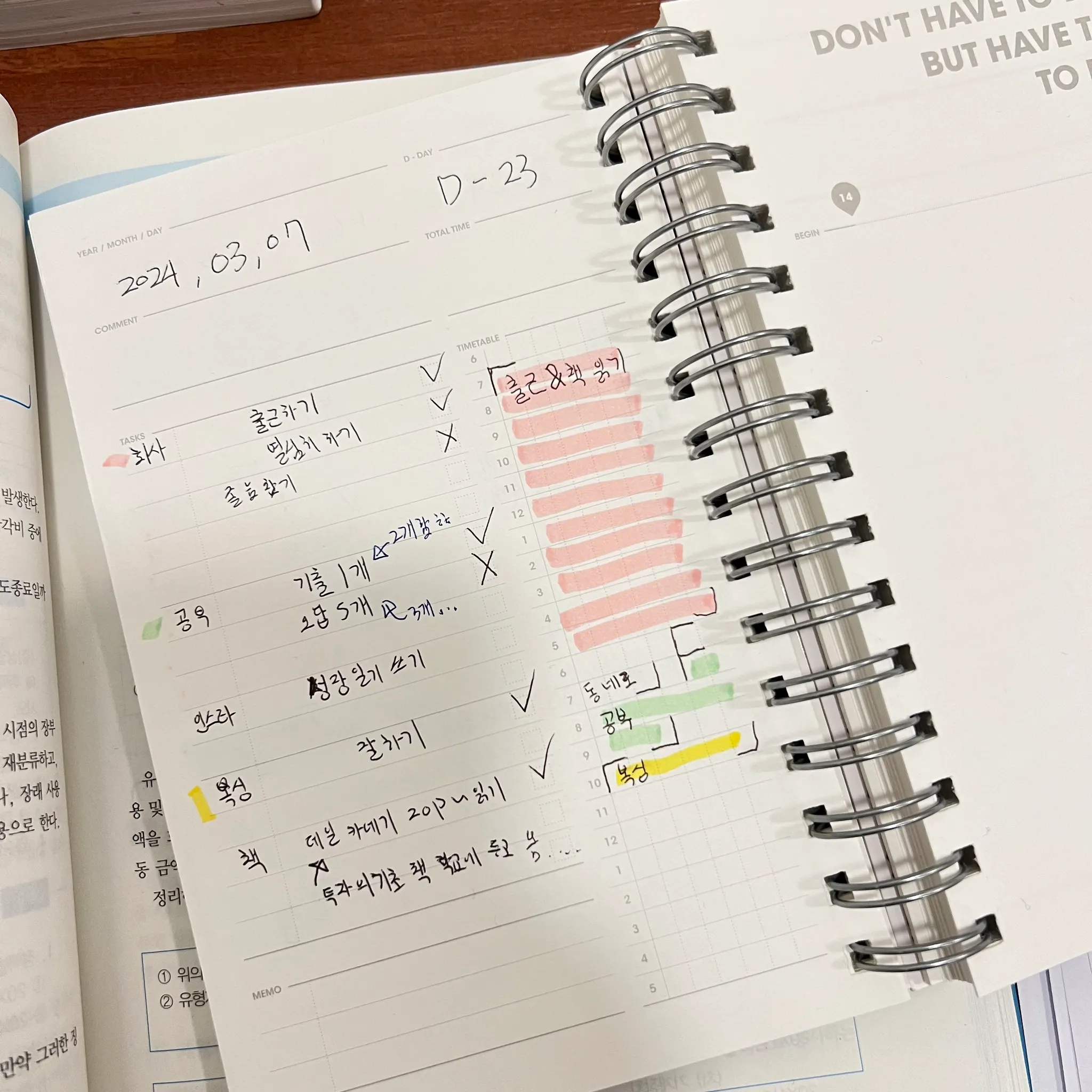 최근에 스터디 플래너를 쓰기 시작했는데 안하던 것들(복싱