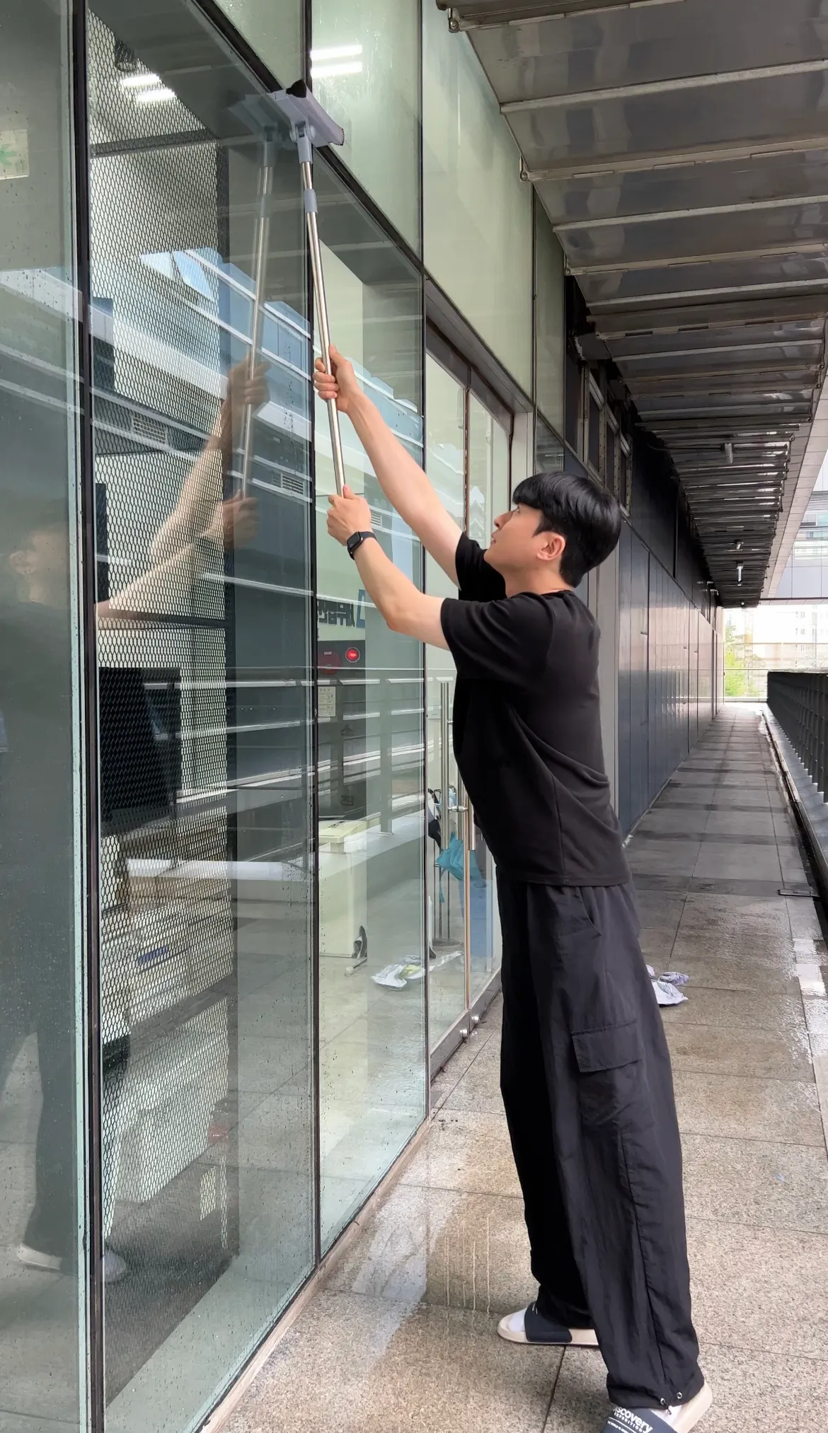 죠셉, 중간에 합류한 오스틴, 크롬과 함께 열심히 유리창을 닦았습니다.