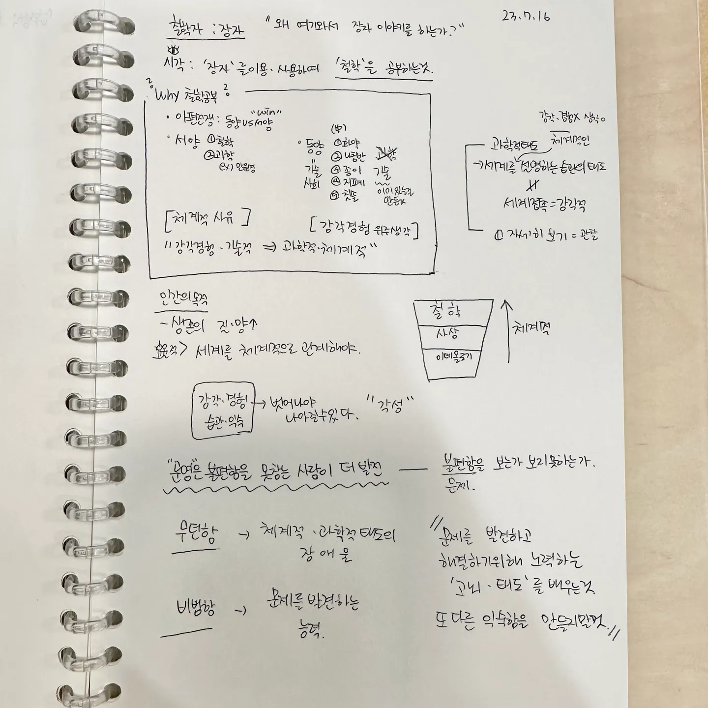오늘 강의에서 만난 장자는 우리에게 현상을 내어놓고, 불편함을 찾고, 관찰하고, 통찰로 나아가라고 메시지를 주었습니다.