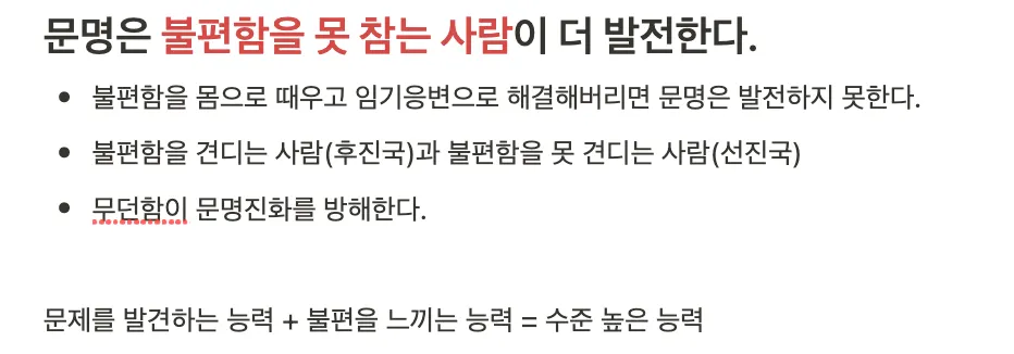 불편함을 인지하며 이를 개선하며 발전해나가는 삶을 살고 있는가?