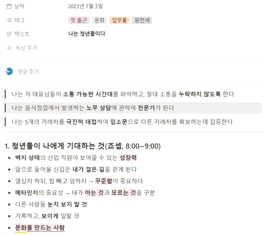 업무에 대한 제 생각들도 기록해야겠습니다.