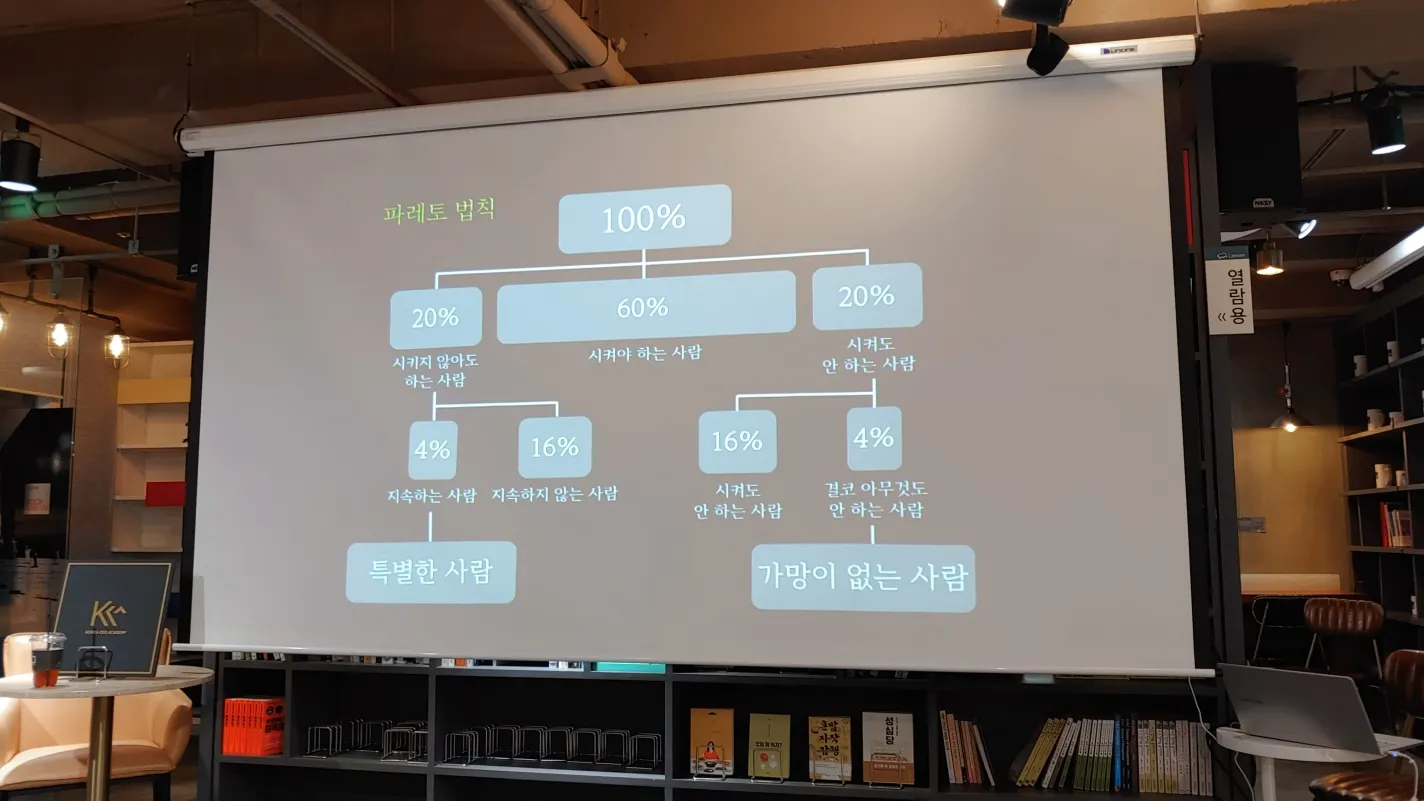 파레토법칙에 따르면 조직에는 시키지 않아도 지속적으로 하는 사람이 4% 있다고 합니다.