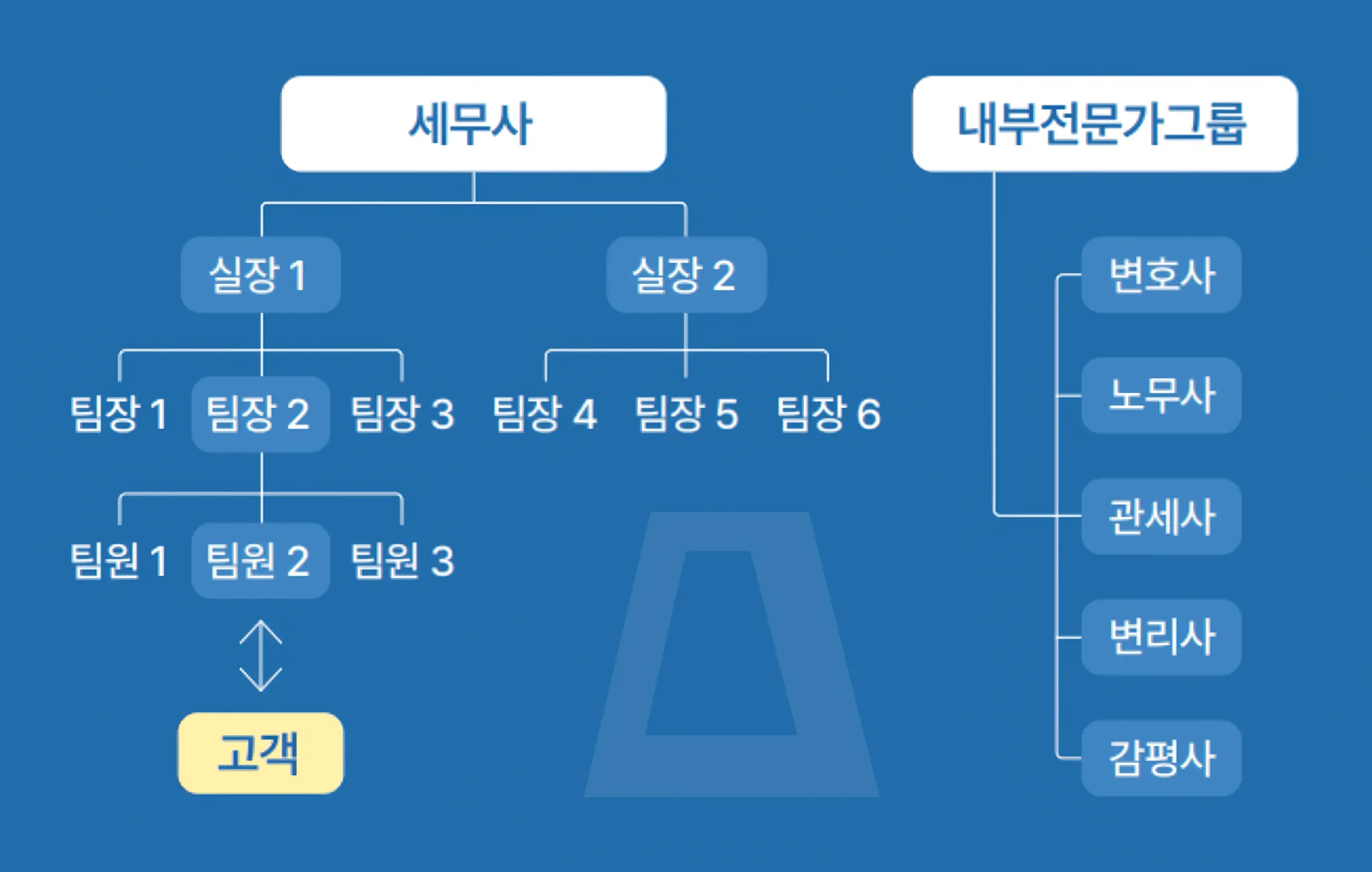 고객에 대하여 하나의 팀이 구성되어 입체적으로 책임 서비스를 제공합니다.