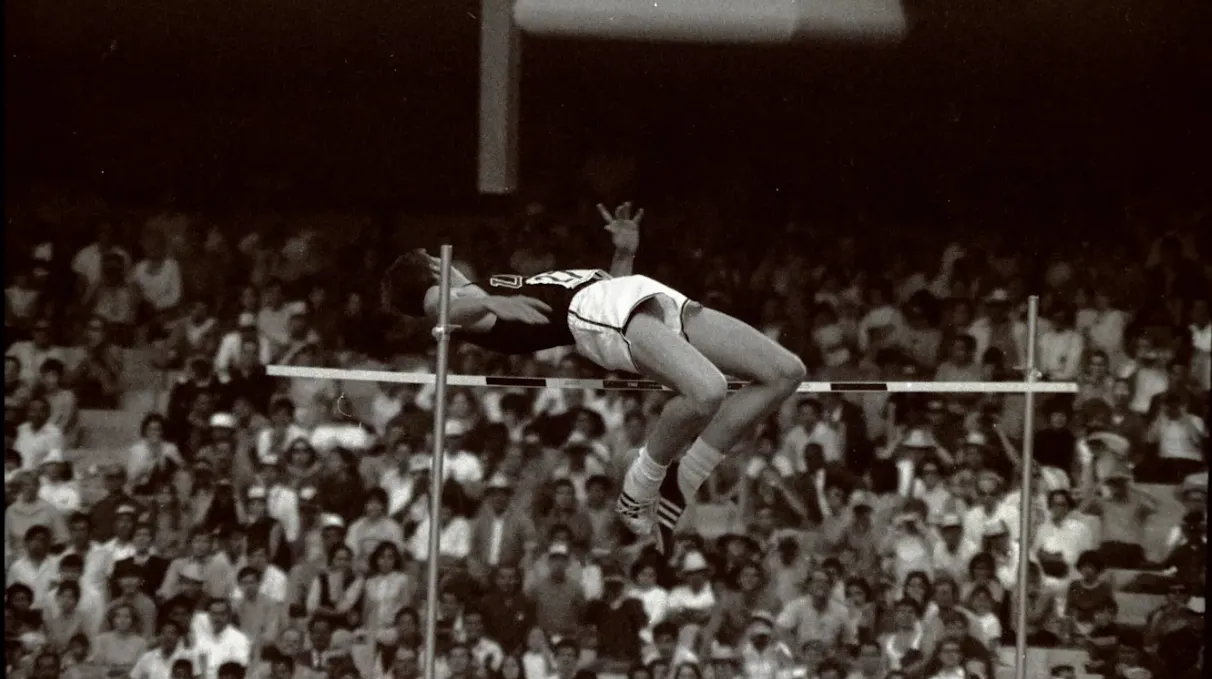 1968년 멕시코올림픽에서 높이뛰기의 모든 선수가 앞으로 뛰어 넘을 때,